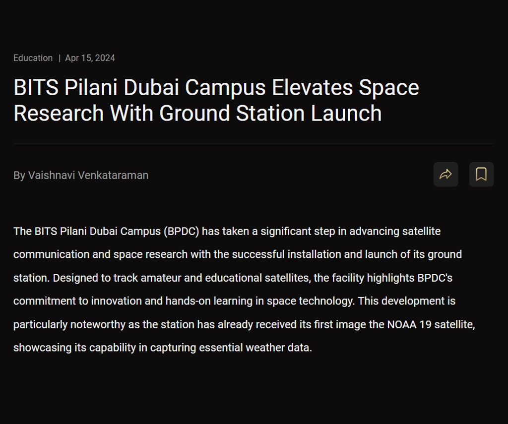 BITS Pilani Dubai Campus Achieves Landmark In Space Research With Ground Station Launch by dubaieduguide.com