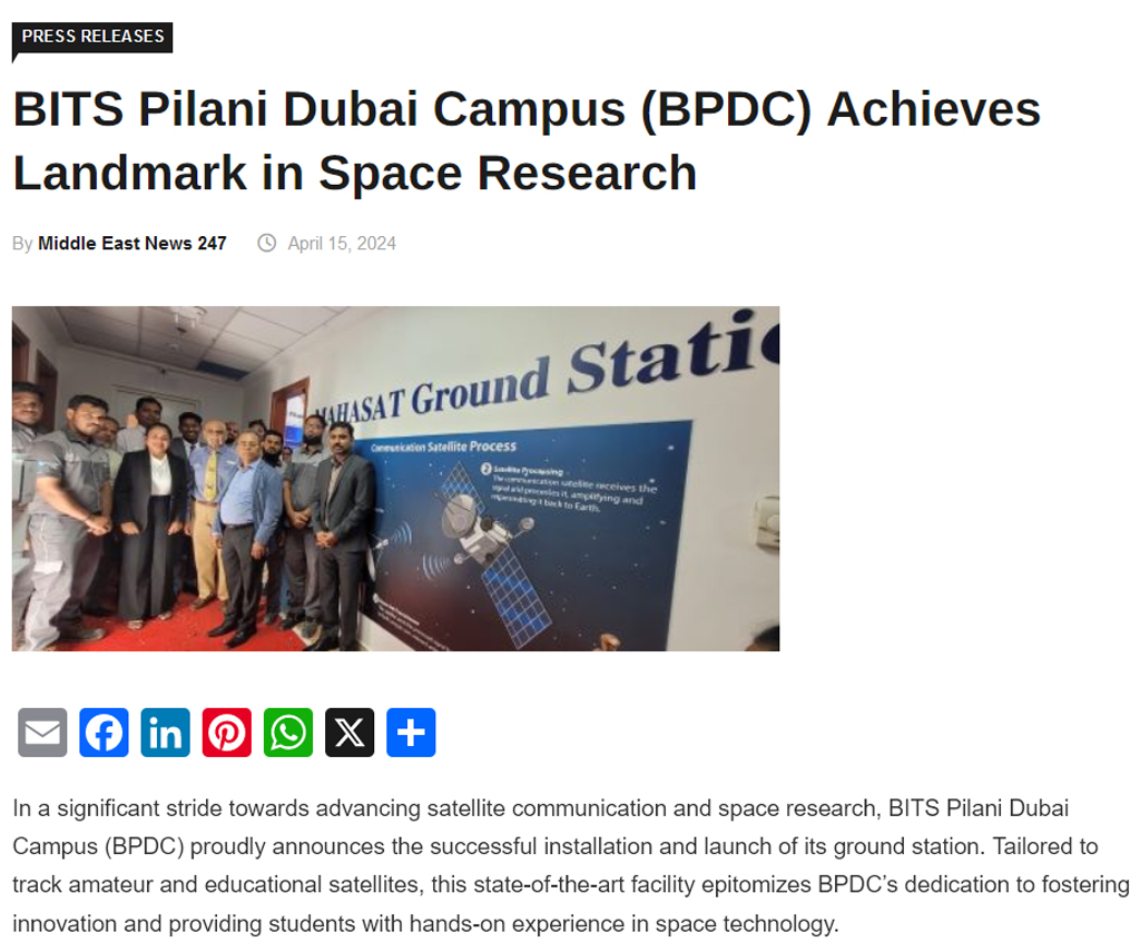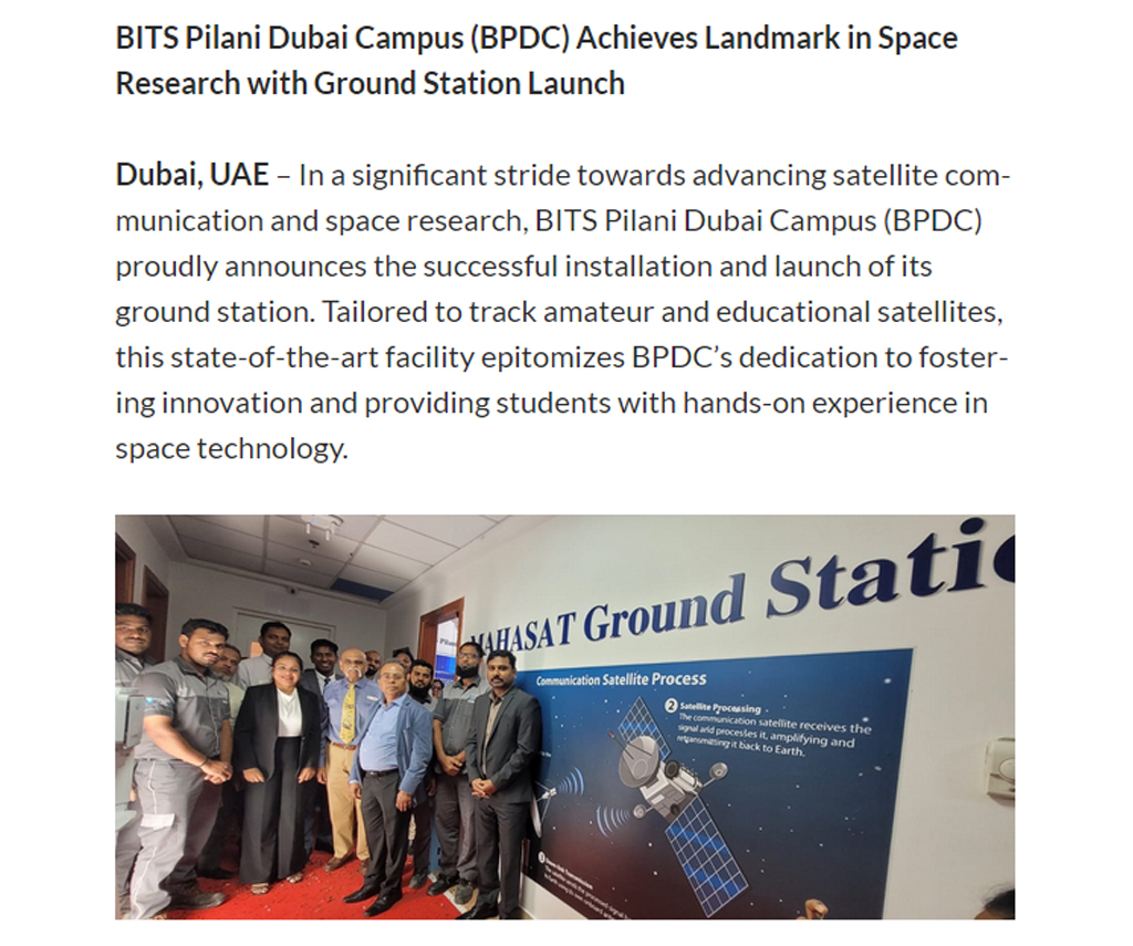 BITS Pilani Dubai Campus (BPDC) Achieves Landmark in Space Research with Ground Station Launch By uaenews247.com